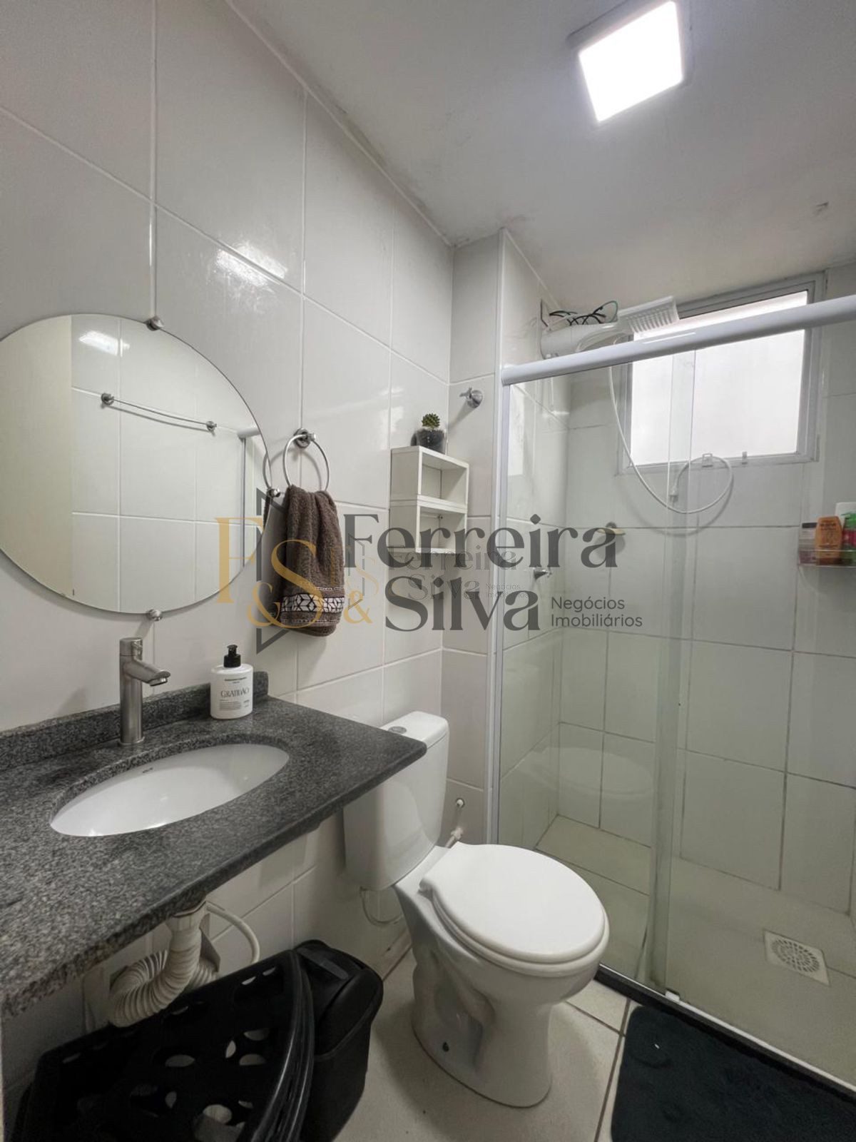 - Banheiro social com espelho e blindex
