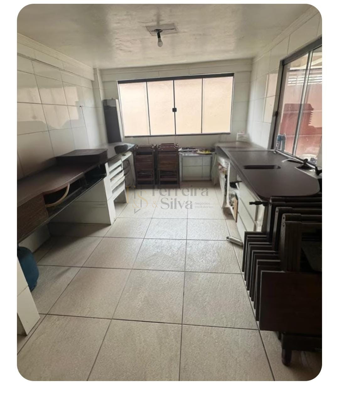 Salão que pode servir como escritório ou cozinha na área da garagem;