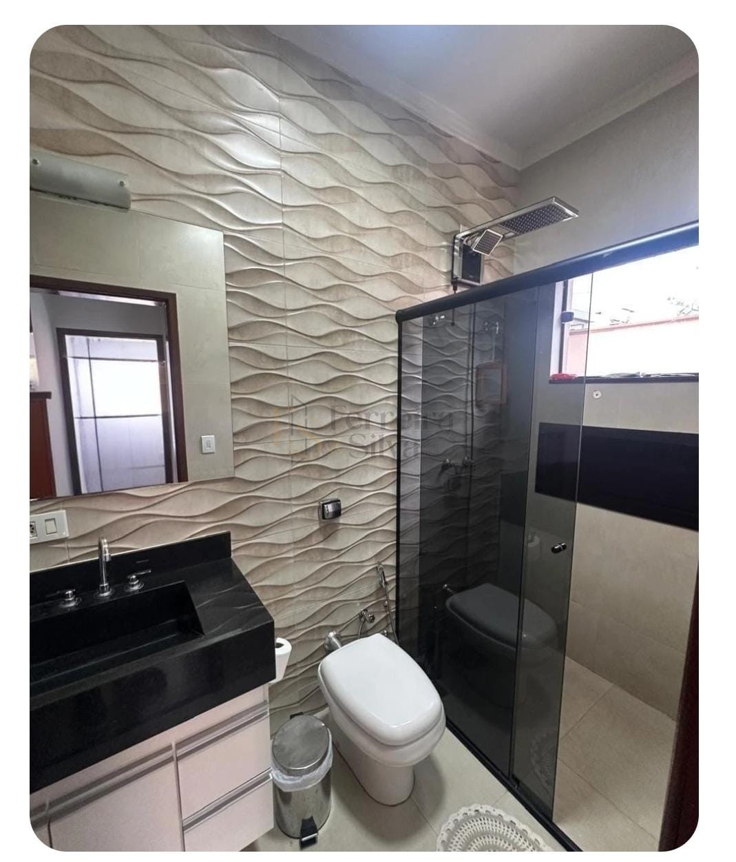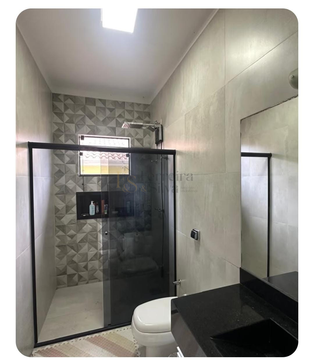 Banheiro na área da garagem;