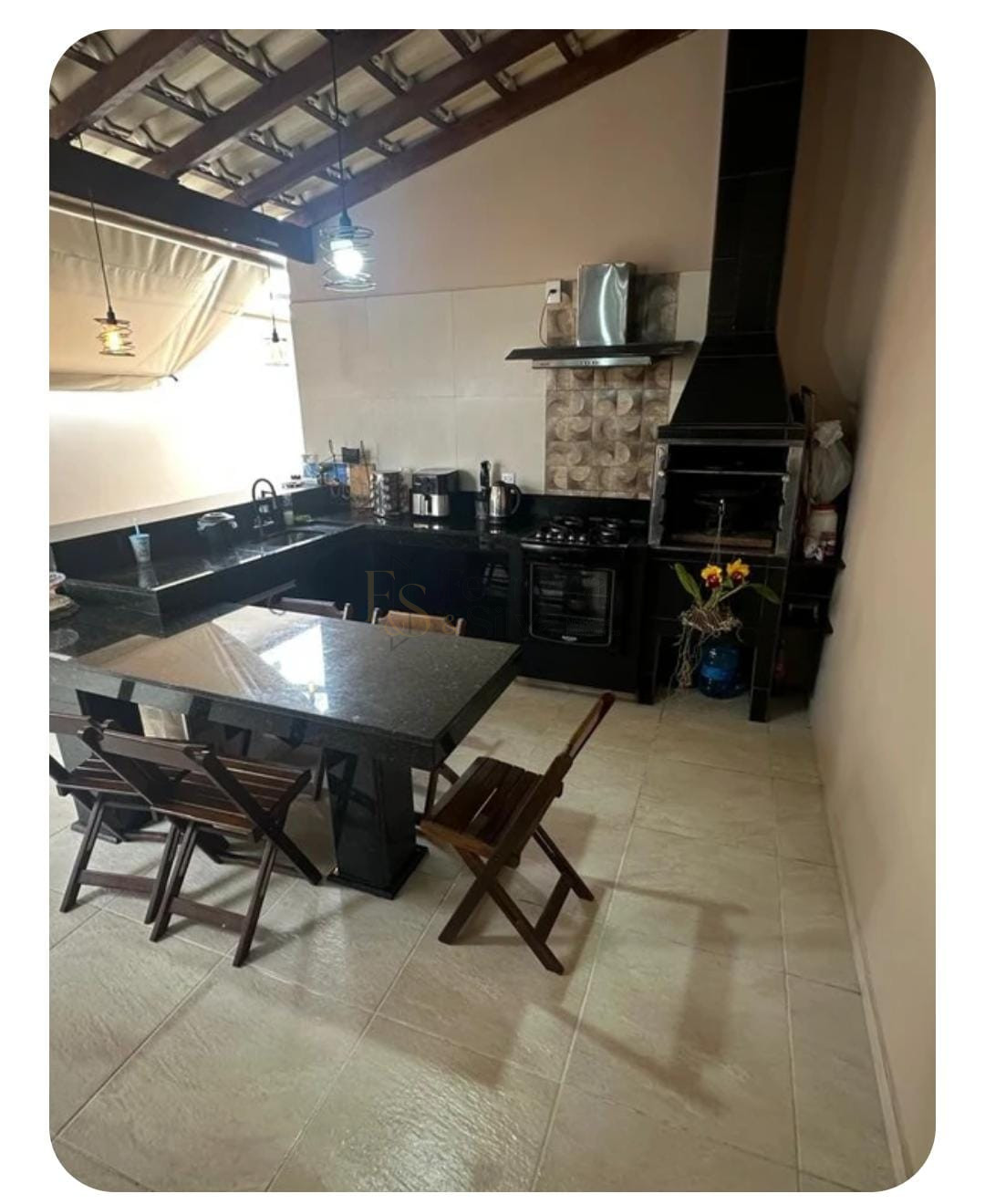 Área gourmet com móveis planejados e churrasqueira;