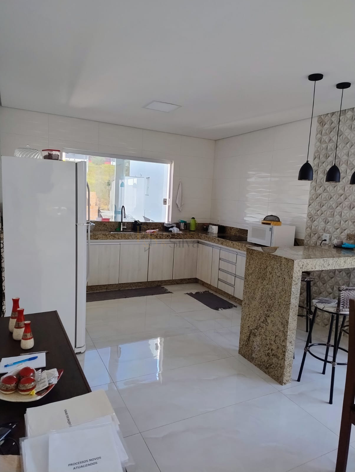 Sala e cozinha amplas, conceito aberto, bem iluminadas e ventiladas